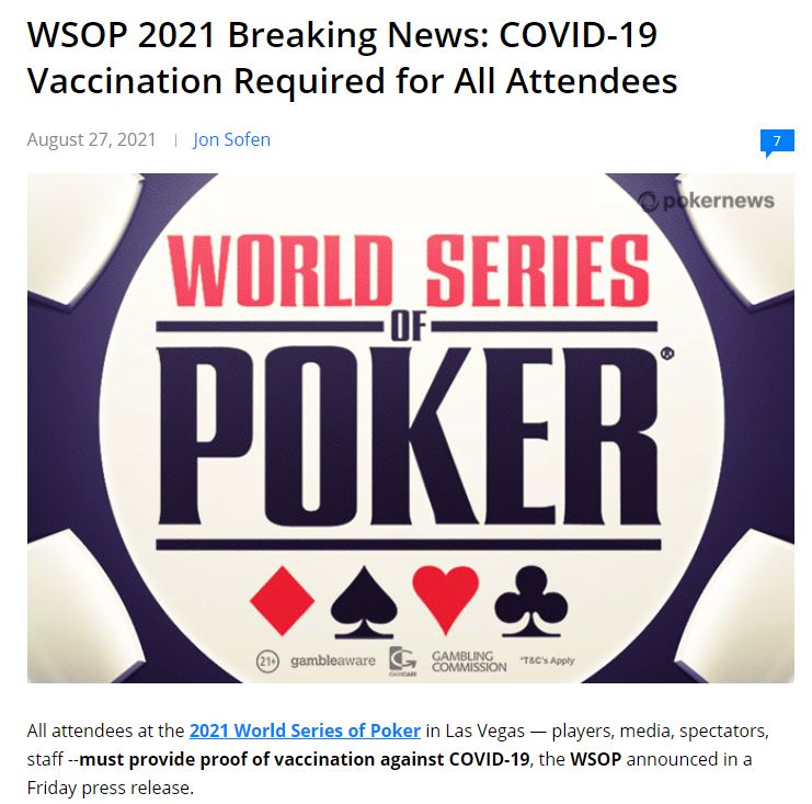 Today the WSOP announced that all players, dealers, staff and spectators must be vaccinated and provide proof of such. So, going forward, the Syndicate will require the same. Our players must now either be vaccinated and provide documentation or for a short period of time be in the process of being vaccinated and show a current negative test result. After Oct 15th all players must be fully vaccinated.