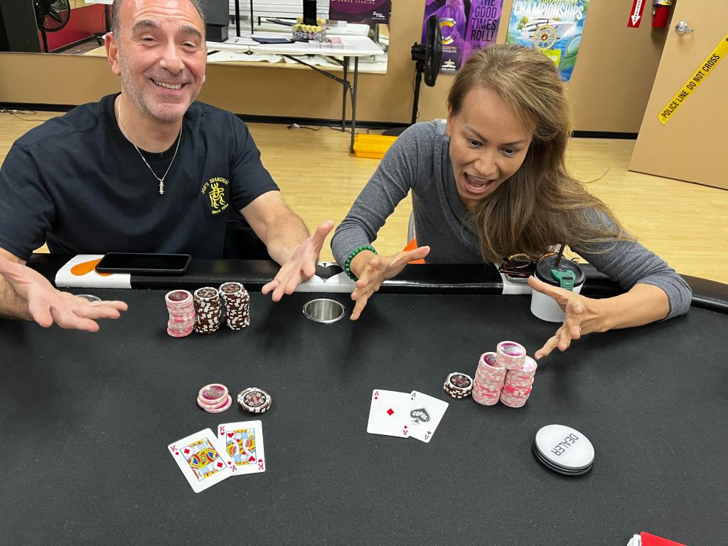 with the chip lead, Anthony got it all in against Lena with KK vs AA….
