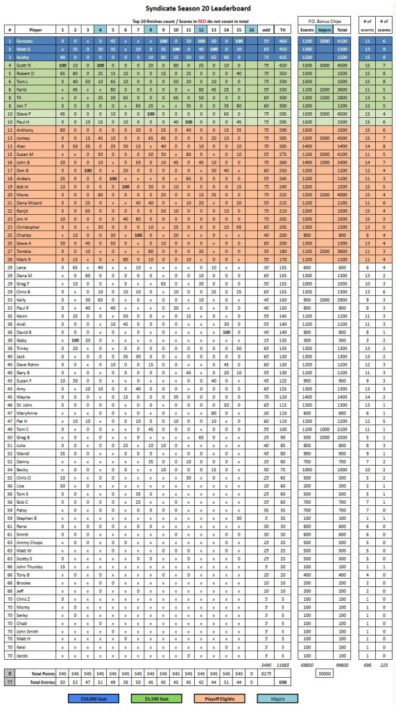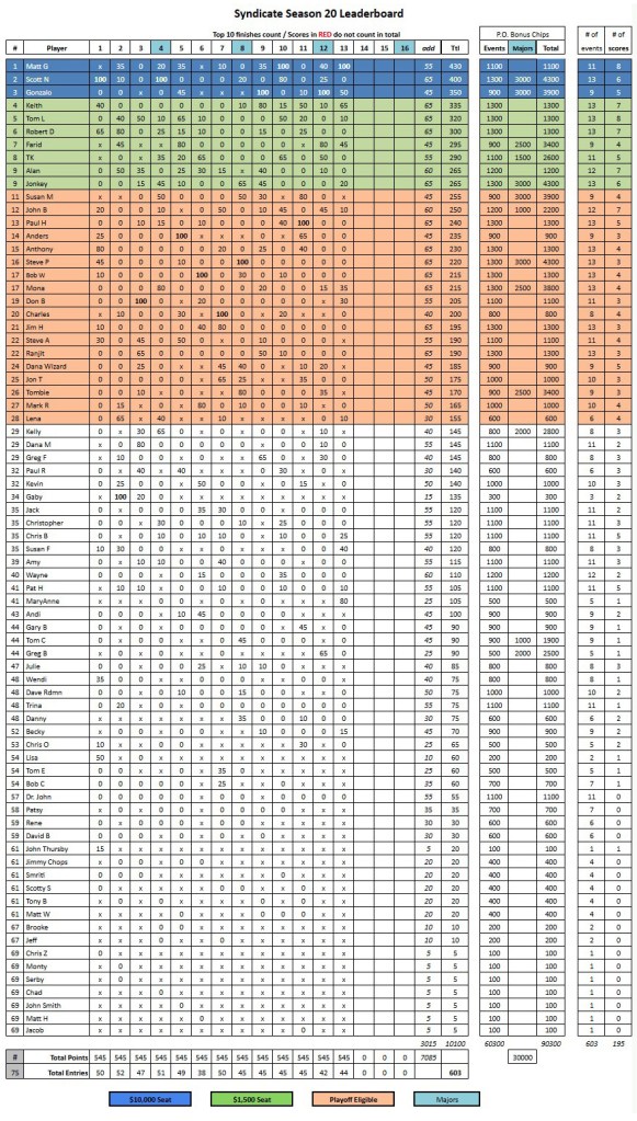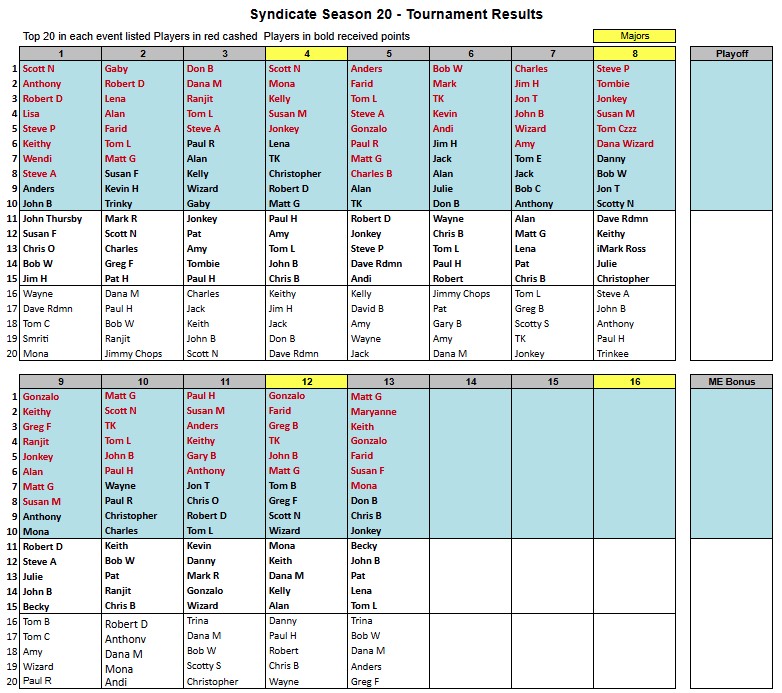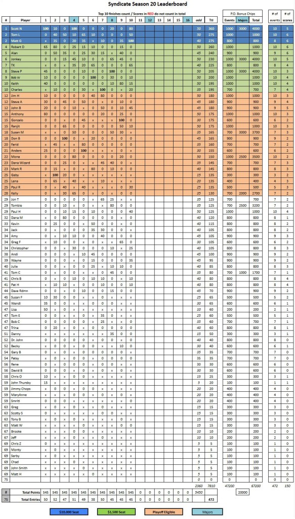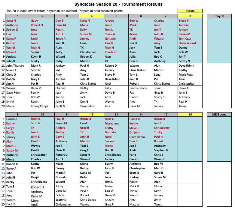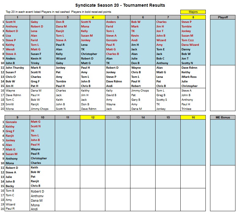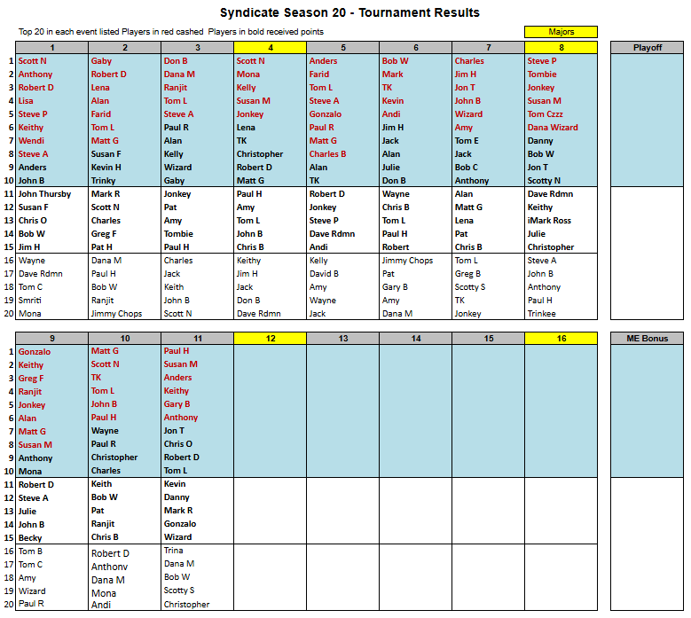 Results Link to the Season 20 Leaderboard, Results, Stake, Schedule Link to the Season 20 MoneyMinder Link to the Season 19 Leaderboard, Results, Stake, Schedule Share this: Share on X (Opens in new window) X Share on Facebook (Opens in new window) Facebook Like Loading...