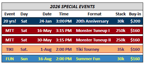 Schedule Season 20 • Schedule & Special Events 2026 Special Events Season 21 Share this: Click to share on X (Opens in new window) X Click to share on Facebook (Opens in new window) Facebook Like Loading...